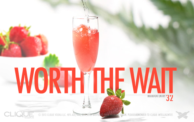Stir 1 cup of sugar into 1 cup of chopped ripe strawberries, cover and let refrigerate for 2 days, stirring occasionally. Add 1 cup champagne vinegar, and let sit for 6 days before straining out the berries and bottling. For the cocktail, shake 1 oz Clique Vodka, and 1/2 oz of your strawberry shrub in a cocktail tin over ice, then strain into a flute. Slowly top with champagne and enjoy! You can also try this recipe over ice, substituting lemon lime soda for the champagne. However you use your strawberry shrub, make sure to let us see by tagging your Instagram pics with #CliqueShots to win!